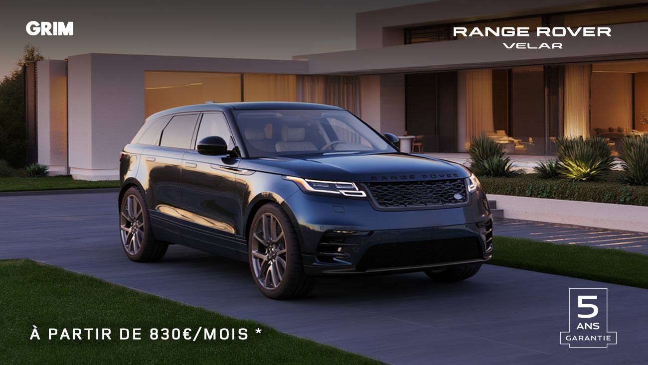 : * Pour une Location avec Option d’Achat (LOA) de 49 mois et 60000 km pour un Range Rover Velar finition « S »HYBRIDE ELECTRIQUE ESSENCE neuf immatriculé 12/2024 identifié en concession au prix remisé de 75757€ hors frais d’immatriculation, avec un apport de 10000€ TTC , 49 loyers mensuels de 830 € ttc € Perte financière inclus . Montant total dû avec option d’achat finale : 88997€ TTC hors assurance facultative Coût mensuel de l’assurance facultative Garantie Perte Financière (qui garantit le paiement d’un capital en cas de vol ou de destruction totale du véhicule loué, dans les conditions et limites prévues par le contrat) : 70 € par mois, inclus dans le loyer. Coût total : 4130€ €. Cette assurance, souscrite auprès de Cardif Assurances Risques Divers S.A. au capital de 21 602 240 € – 308 896 547 RCS Paris, 1 bd Haussmann 75009 Paris et Cardif Assurances Vie, S.A. au capital de 719 167 488 € – 732 028 154 RCS Paris, (même adresse), entreprises régies par le Code des Assurances, est distribuée par Cofica Bail S.A. au capital de 14 485 544 € – 399 181 924 RCS Paris, 1 bd Haussmann 75009 Paris – N° Orias : 07 023 197 (www.orias.fr) en qualité de courtier en assurance, sans obligation d’exclusivité : liste des entreprises d’assurance partenaires disponible sur simple demande. Sociétés soumises à l’Autorité de Contrôle Prudentiel et de Résolution (ACPR), 4 Place de Budapest 75436 Paris Cedex 9. Offre valable jusqu’au 31 janvier 2026, pour une location avec option d’achat, remboursable sur une durée de 25 à 61 mois, sur un véhicule neuf. Sous réserve d’acceptation par Jaguar Land Rover Financial Services, département de Cofica Bail, S.A. au capital de 14 485 544 € – 399 181 924 RCS Paris, 1 boulevard Haussmann 75009 Paris – N°ORIAS : 07 023 197 (www.orias.fr). Vous disposez d’un droit de rétractation. Voir conditions en concession
