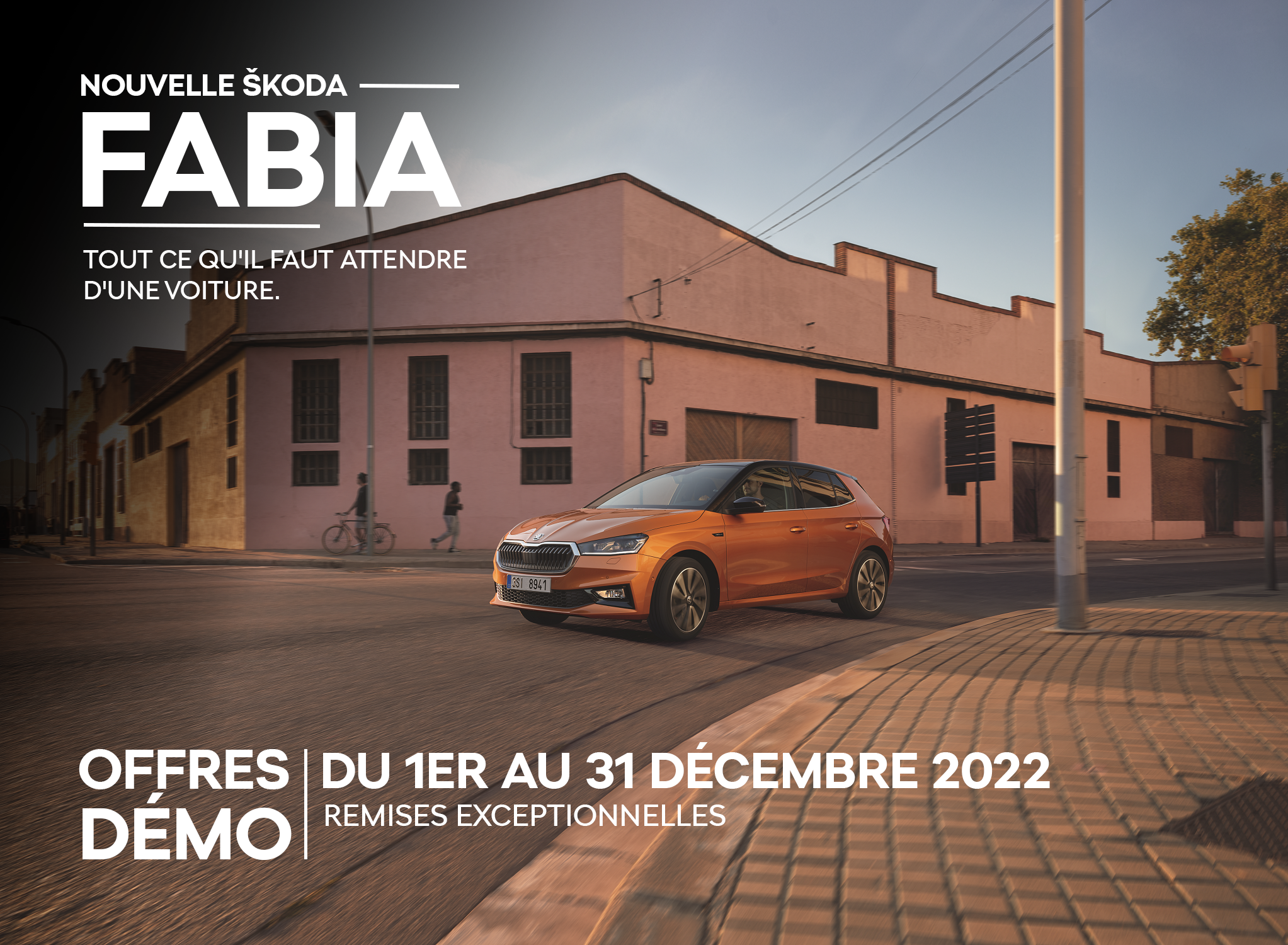 En ce moment, et ce jusqu’au 31 décembre, vos concessions ŠKODA Aurillac et ŠKODA Saint-Flour vous donne rendez-vous pour des offres exceptionnelles*, sur une large gamme de véhicules de démonstration ŠKODA Fabia, prêts à partir.