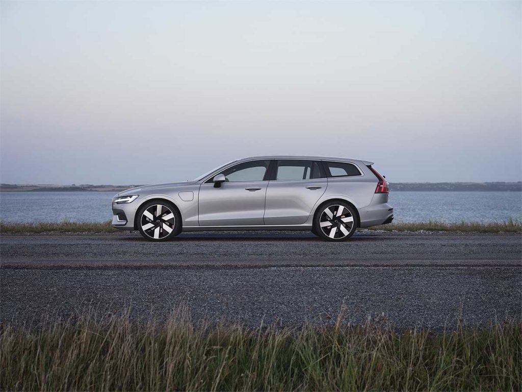 Le profil bas du Volvo V60 réduit la résistance à l’air. Cette optimisation influence directement la consommation, tant pour les motorisations micro-hybrides que pour les versions hybrides rechargeables.