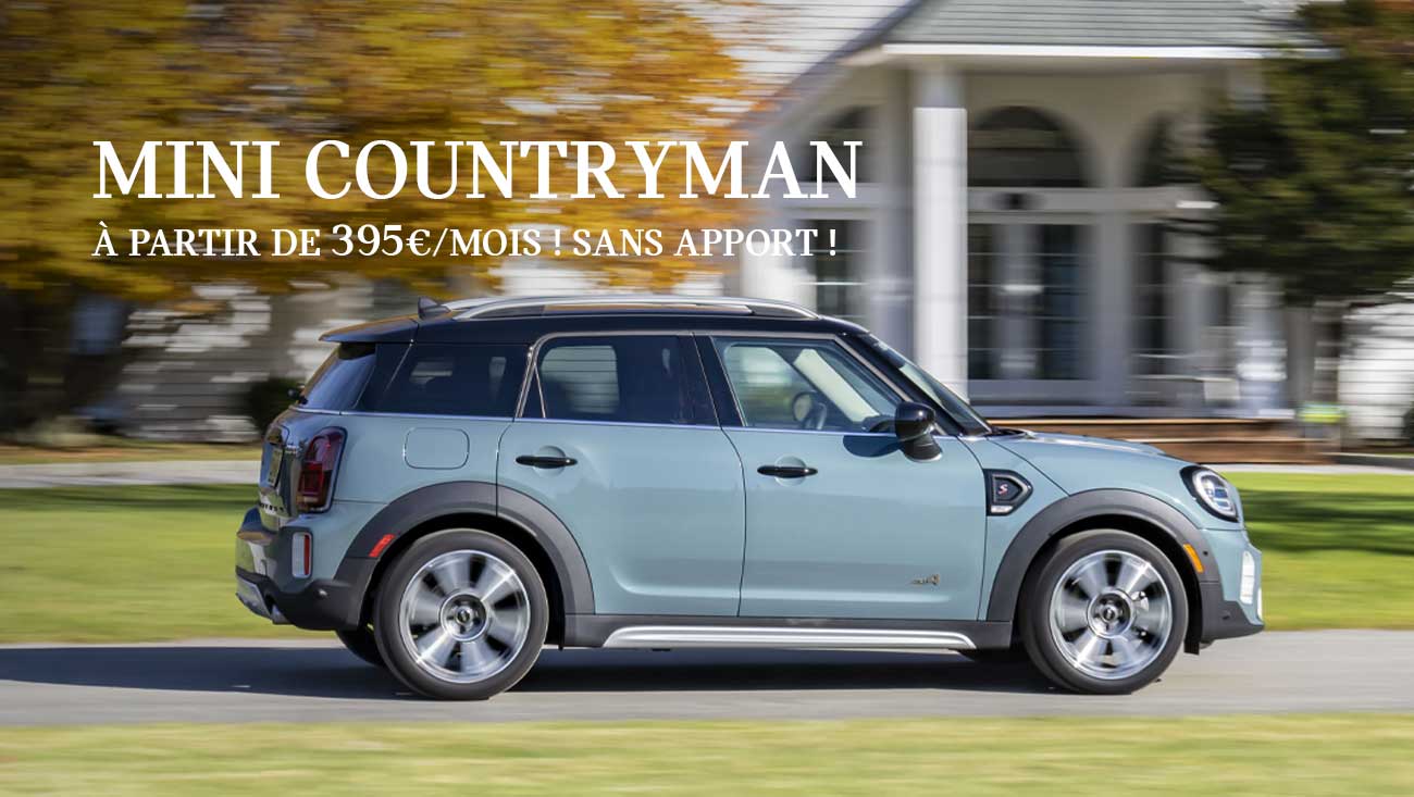 *MINI COOPER COUNTRYMAN EDITION HIGHLANDS. LLD 36 MOIS 30 000 KM. A PARTIR DE 395 €/MOIS (1). SANS APPORT. ENTRETIEN* ET EXTENSION DE GARANTIE INCLUS. (1) Exemple pour une MINI COOPER COUNTRYMAN EDITION HIGHLANDS. 36 loyers linéaires : 395 €/mois. Location Longue Durée sur 36 mois et pour 30000 km incluant l’entretien* et l’extension de garantie. Assurance perte financière à souscrire par l’intermédiaire de BMW Finance ou auprès de l’assureur de votre choix, sous réserve d’en justifier auprès de BMW Finance. Offre réservée aux particuliers pour toute commande d’une MINI COOPER COUNTRYMAN EDITION HIGHLANDS dans les concessions participantes avant le 30/06/2023 sous réserve d’acceptation par BMW Finance, SNC au capital de 87 000 000 € – RCS Versailles 343 606 448, inscrit à l’ORIAS sous le n°07 008 883. Depuis le 01/09/2018, les véhicules légers neufs sont réceptionnés en Europe sur la base de la procédure d’essai harmonisée pour les véhicules légers (WLTP), procédure d’essai permettant de mesurer la consommation de carburant et les émissions de CO₂, plus réaliste que la procédure NEDC précédemment utilisée. *Hors pièces d’usure. *** L’extérieur et l’intérieur du modèle MINI représenté peuvent varier en fonction des mises à jour produit régulières. Veuillez-vous adresser à votre Concessionnaire MINI local pour toute question.